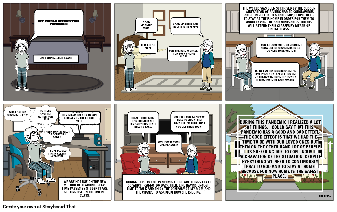 DURING THIS PANDEMIC I REALIZED A LOT OF THINGS, I COULD SAY THAT THIS PANDEMIC HAS A GOOD AND BAD EFFECT. THE GOOD EFFECT IS THAT WE HAD THE TIME TO BE WITH OUR LOVED ONES BUT THEN ON THE OTHER HAND LOT OF PEOPLE IS SUFFERING DUE TO CONTINOUS AGGRAVATION OF THE SITUATION. DESPITE EVERYTHING WE NEED TO CONTINOUSLY PRAY TO GOD AND TO STAY AT HOME BECAUSE FOR NOW HOME IS THE SAFEST PLACE.