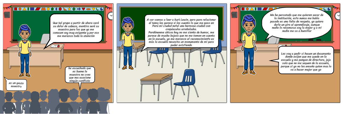 A ver vamos a leer a kurt Lewin, pero para relacionar el tema les parece si les cuento lo que me paso en Perú mi ciudad natal una hermosa ciudad con crepúsculos arrebolados.Perdónenme chicos hoy no me siento de humor, me parece de mucha bajeza que no me tomen en cuenta en la escuela, yo me merezco el reconocimiento es más la escuela necesita un monumento de mi para poder existiendo
