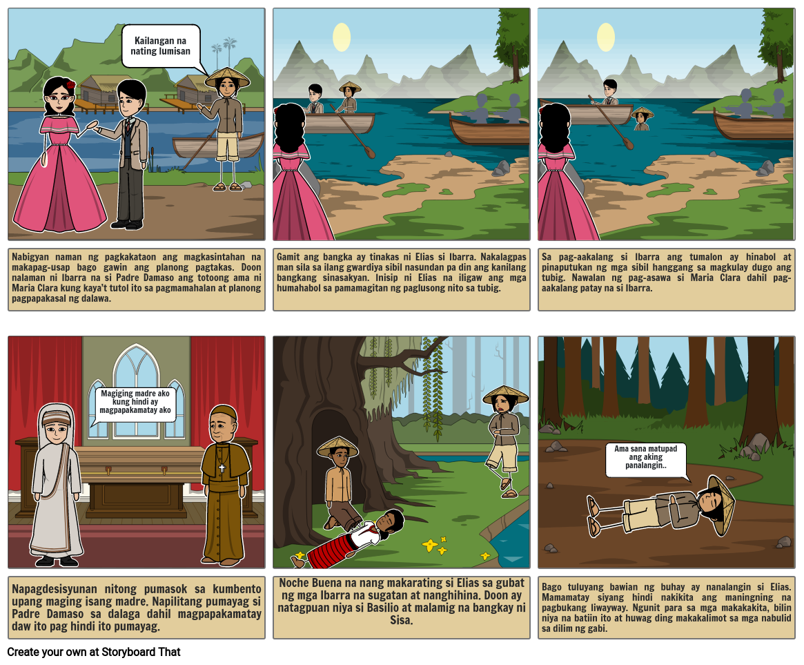 Gamit ang bangka ay tinakas ni Elias si Ibarra. Nakalagpas man sila sa ilang gwardiya sibil nasundan pa din ang kanilang bangkang sinasakyan. Inisip ni Elias na iligaw ang mga humahabol sa pamamagitan ng paglusong nito sa tubig.