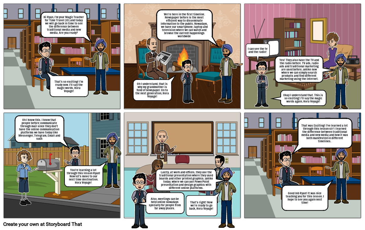 Hi Ryan, I'm your Magic Teacher for Time Travel 101 and today we will go back in time to see the difference between traditional media and new media. Are you ready?
