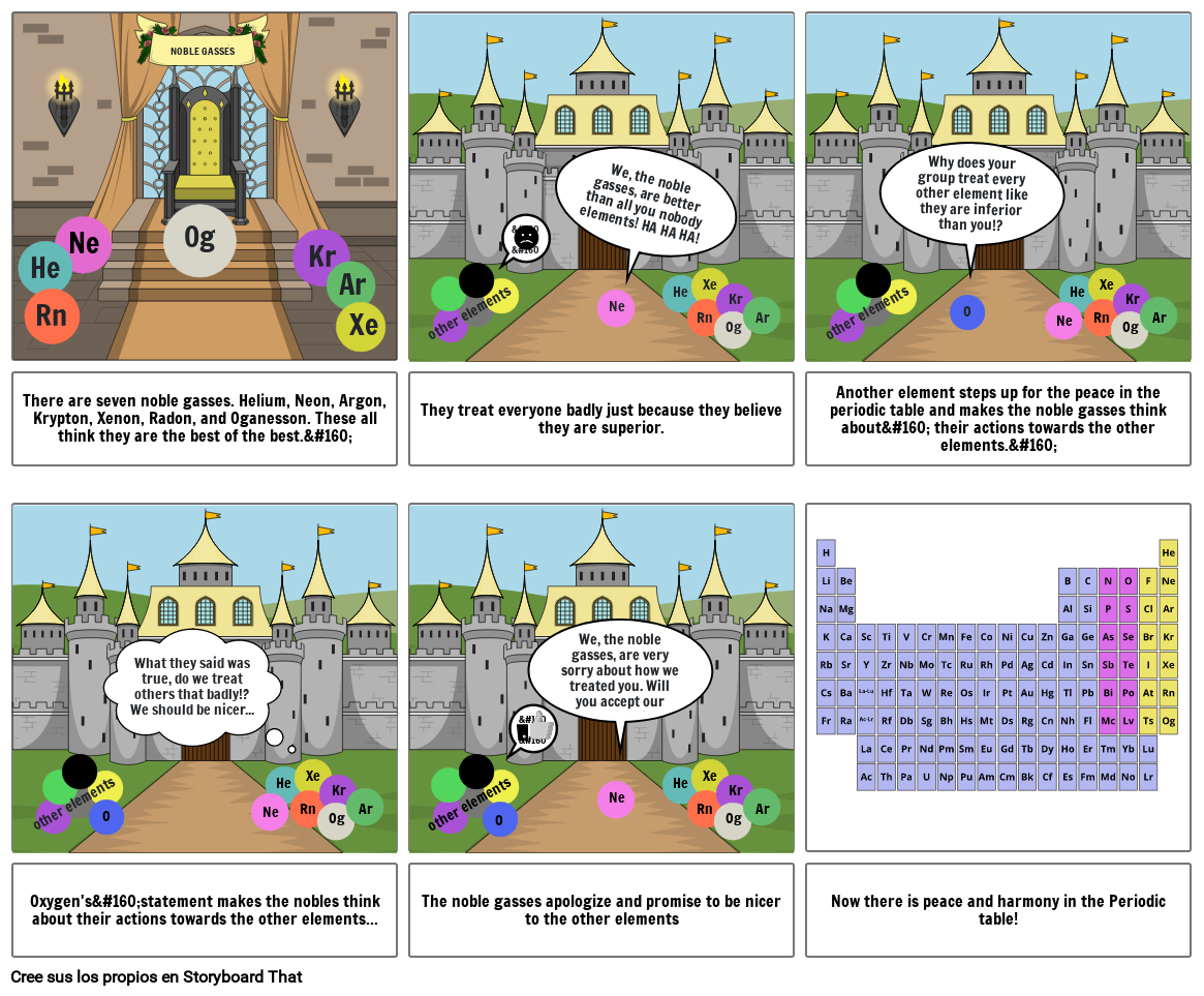 We, the noble gasses, are better than all you nobody elements! HA HA HA!