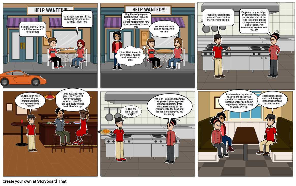 Hey, I heard you guys talking about jobs, and my restaurant is actually hiring right now if you would like to work here