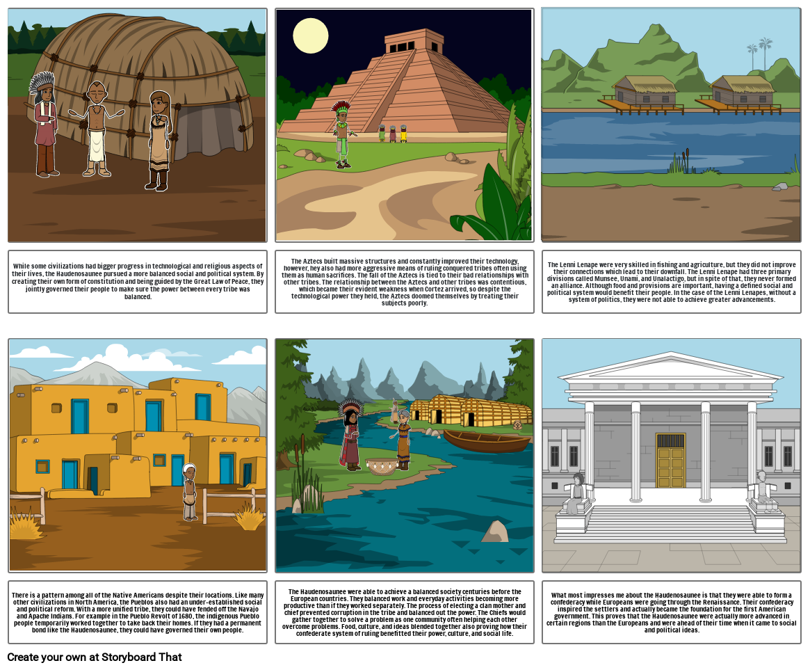 While some civilizations had bigger progress in technological and religious aspects of their lives, the Haudenosaunee pursued a more balanced social and political system. By creating their own form of constitution and being guided by the Great Law of Peace, they jointly governed their people to make sure the power between every tribe was balanced.