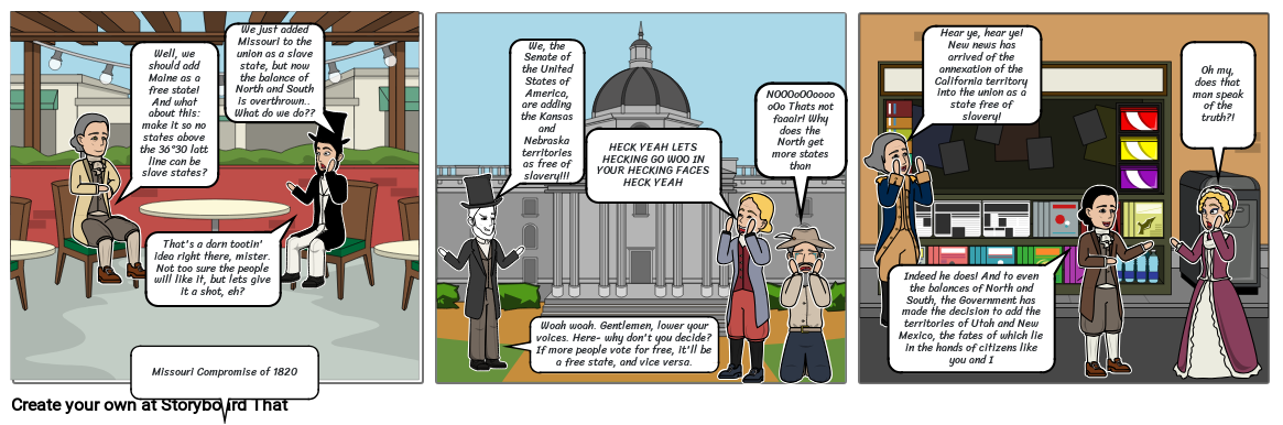We just added Missouri to the union as a slave state, but now the balance of North and South is overthrown.. What do we do??