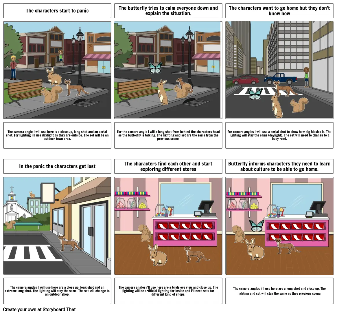 For camera angles I will use a aerial shot to show how big Mexico is. The lighting will stay the same (daylight). The set will need to change to a busy road.