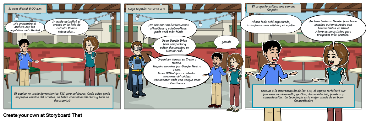 El equipo no usaba herramientas TIC para colaborar. Cada quien tenía su propia versión del archivo, no había comunicación clara y todo se desorganizó