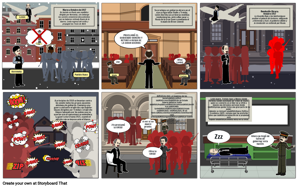Se proclama un gobierno obrero en el que ya figuraban Stalin y Trotsky,Lenin decreta sus primeras medidas revolucionarias, entre ellas sacar a Rusia de la Gran Guerra mediante el tratado de Brest-Litovsk