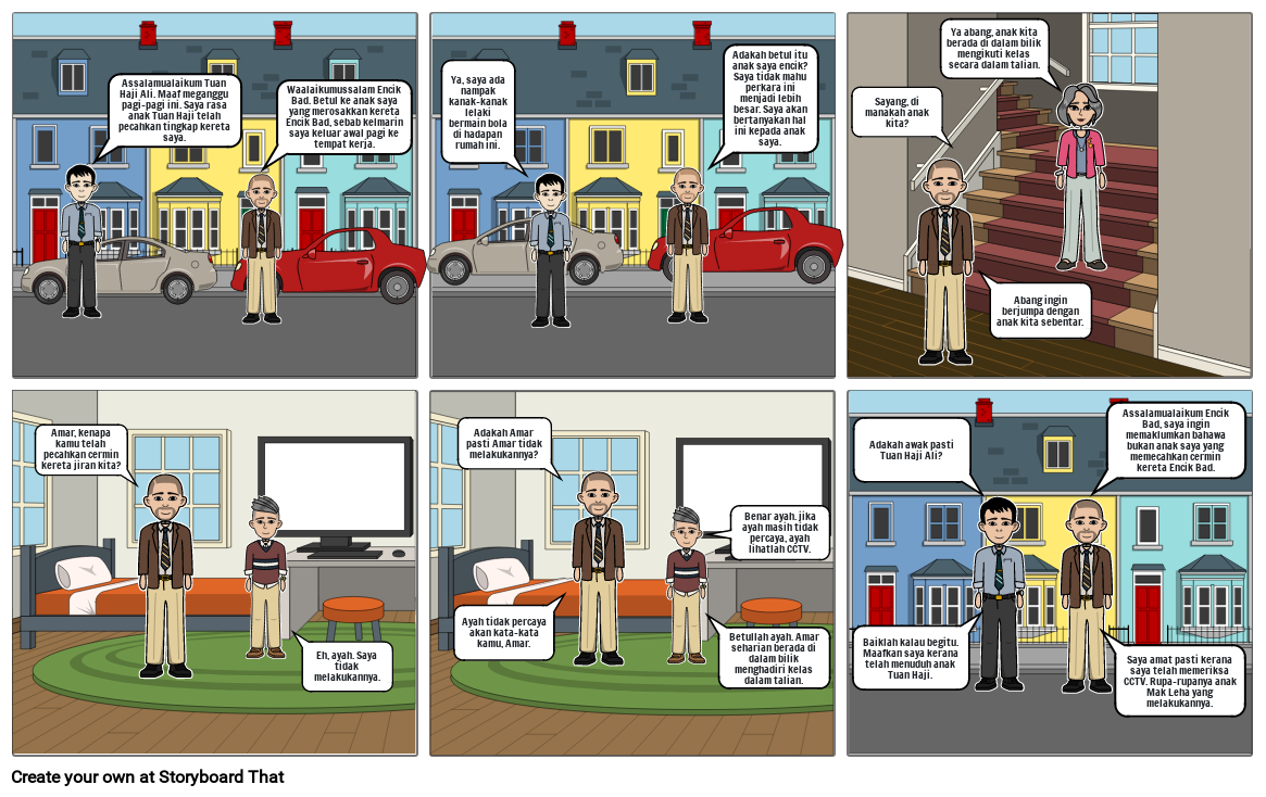 Assalamualaikum Tuan Haji Ali. Maaf meganggu pagi-pagi ini. Saya rasa anak Tuan Haji telah pecahkan tingkap kereta saya.