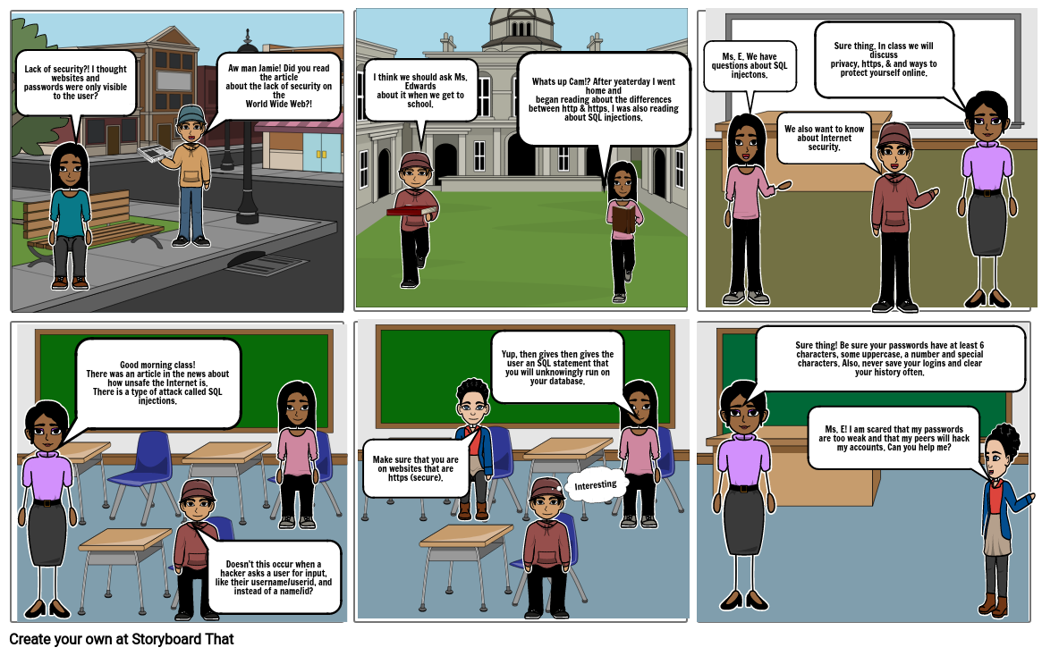 Good morning class! There was an article in the news about how unsafe the Internet is. There is a type of attack called SQL injections.