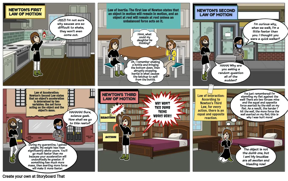 Law of Inertia: The first law of Newton states that an object in motion will remain in motion, and an object at rest will remain at rest unless an unbalanced force acts on it.