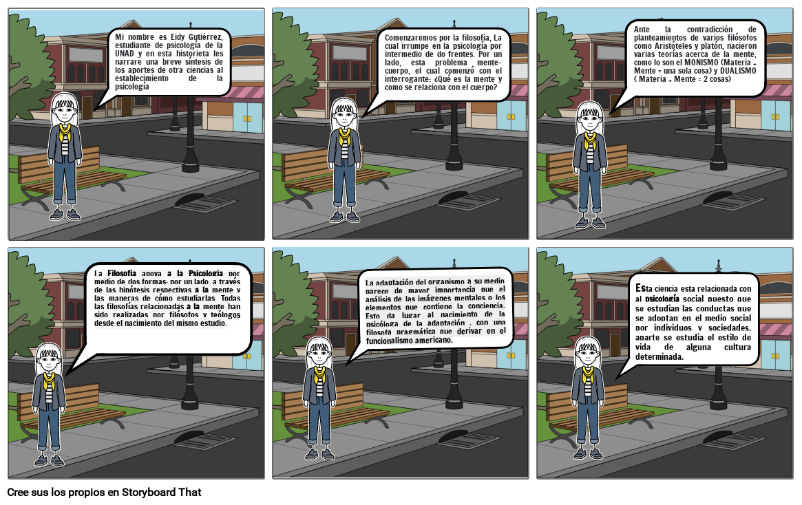 Mi nombre es Eidy Gutiérrez, estudiante de psicología de la UNAD y en esta historieta les narrare una breve síntesis de los aportes de otra ciencias al establecimiento de la psicología