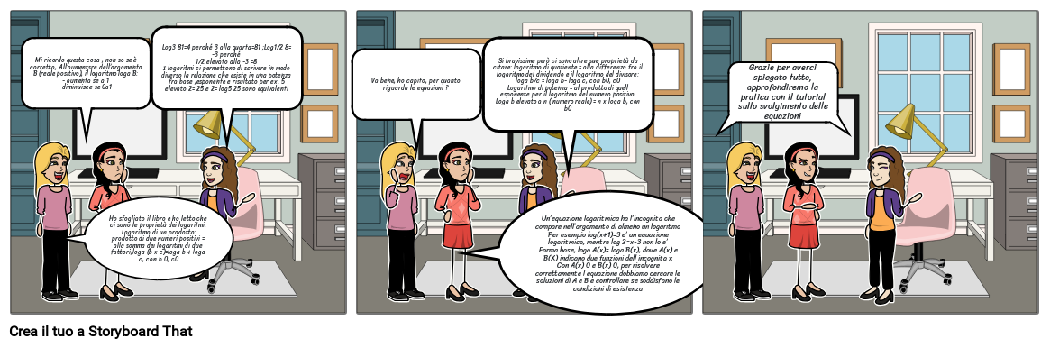 Ho sfogliato il libro e ho letto che ci sono le proprietà dei logaritmi:Logaritmo di un prodotto: prodotto di due numeri positivi = alla somma dei logaritmi di due fattori,loga (b x c)=loga b + loga c, con b 0, c0