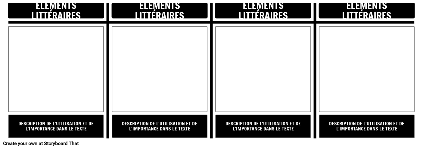 Élément littéraire T-Chart - Identifier et représenter les éléments littéraires trouvés dans le texte. Inclure une description de son importance.