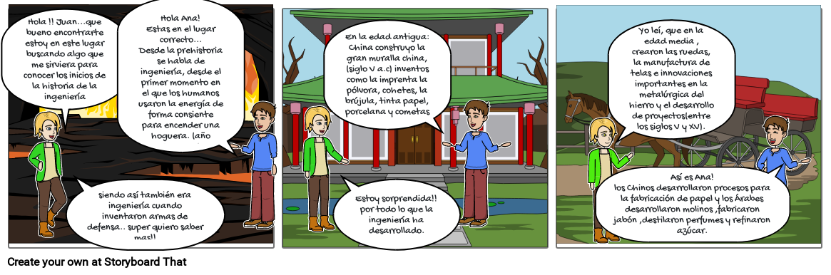 Hola Ana!Estas en el lugar correcto...Desde la prehistoria se habla de ingeniería, desde el primer momento en el que los humanos usaron la energía de forma consiente para encender una hoguera. (año 5.000 ac)