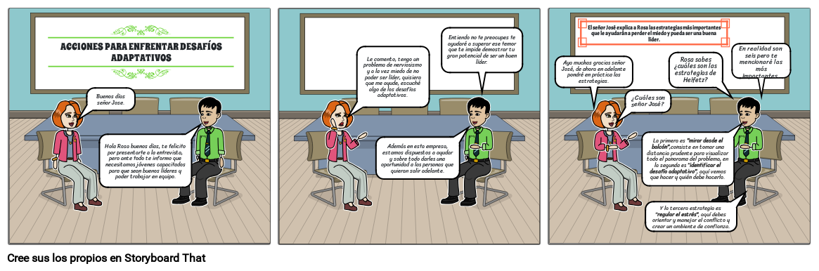 El señor José explica a Rosa las estrategias más importantes que le ayudarán a perder el miedo y pueda ser una buena líder.
