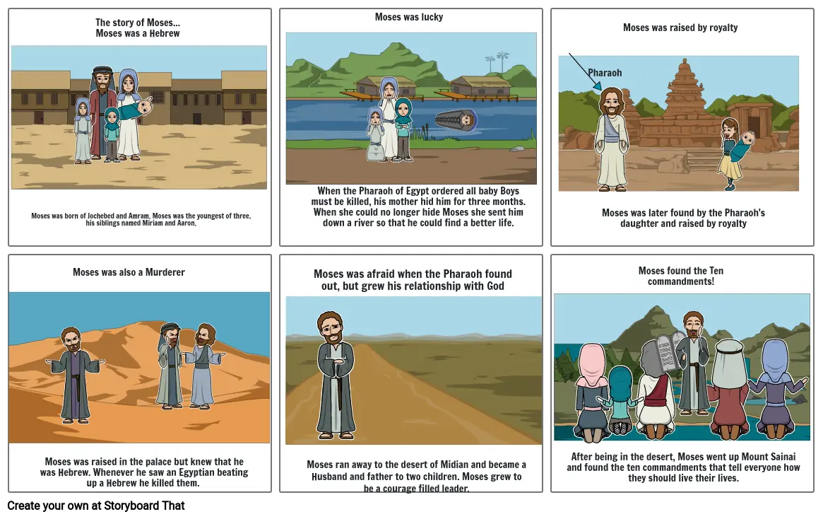 When the Pharaoh of Egypt ordered all baby Boys must be killed, his mother hid him for three months. When she could no longer hide Moses she sent him down a river so that he could find a better life.