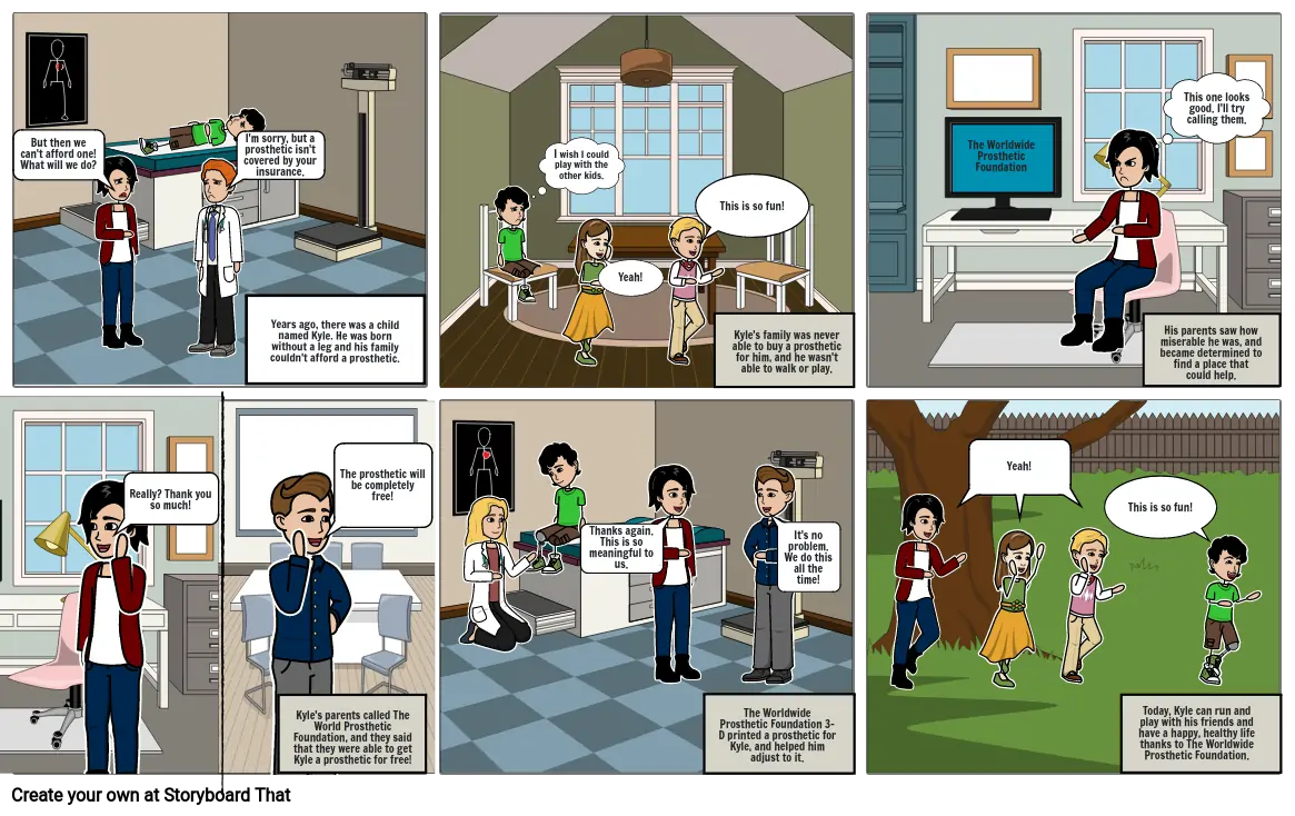 Kyle's parents called The World Prosthetic Foundation, and they said that they were able to get Kyle a prosthetic for free!