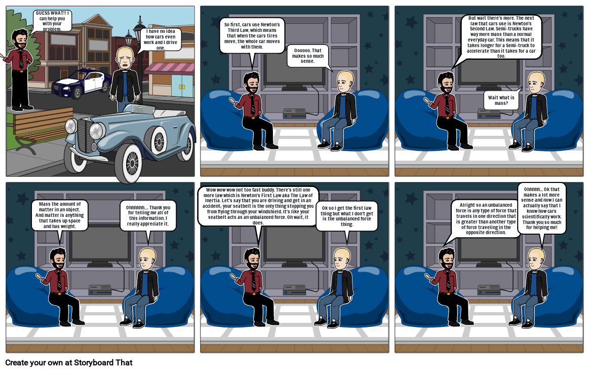 Wow wow wow not too fast buddy. There's still one more law which is Newton's First Law aka The Law of Inertia. Let's say that you are driving and get in an accident; your seatbelt is the only thing stopping you from flying through your windshield. It's like your seatbelt acts as an unbalanced force. Oh wait, it does.