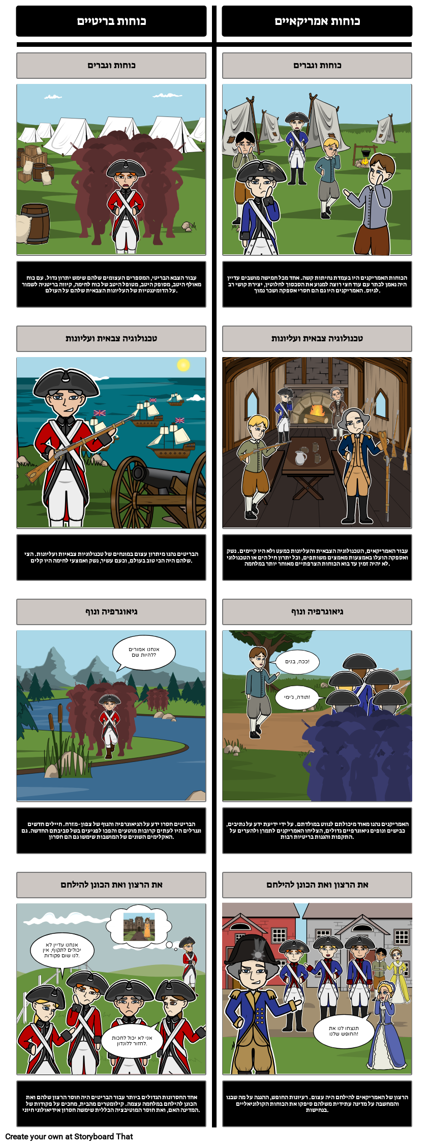 המהפכה האמריקאית - להשוות בין חיילים בריטיים ואמריקאים