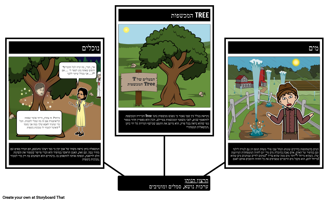 התלמידים יכולים לעקוב אחר הנושאים, הסמלים והמוטיבים השונים הקיימים במעניק המשאלות וליצור מפת עכביש להמחשת דוגמאות