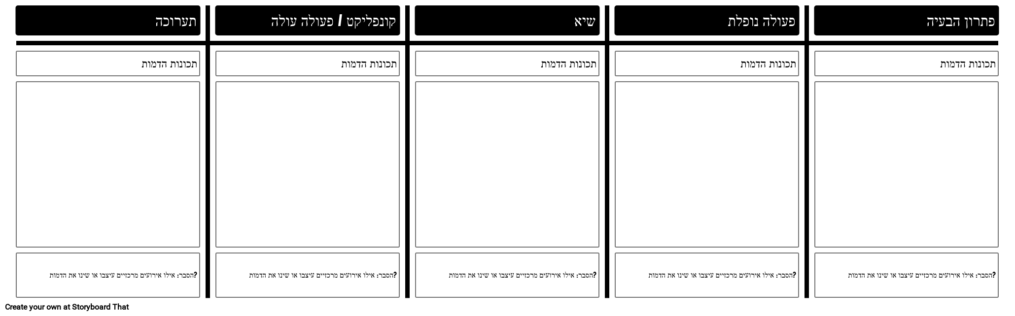תבנית אבולוציה לדמות לרומן או סיפור. השתמש בתבנית זו כדי לעקוב אחר פיתוח הדמויות.