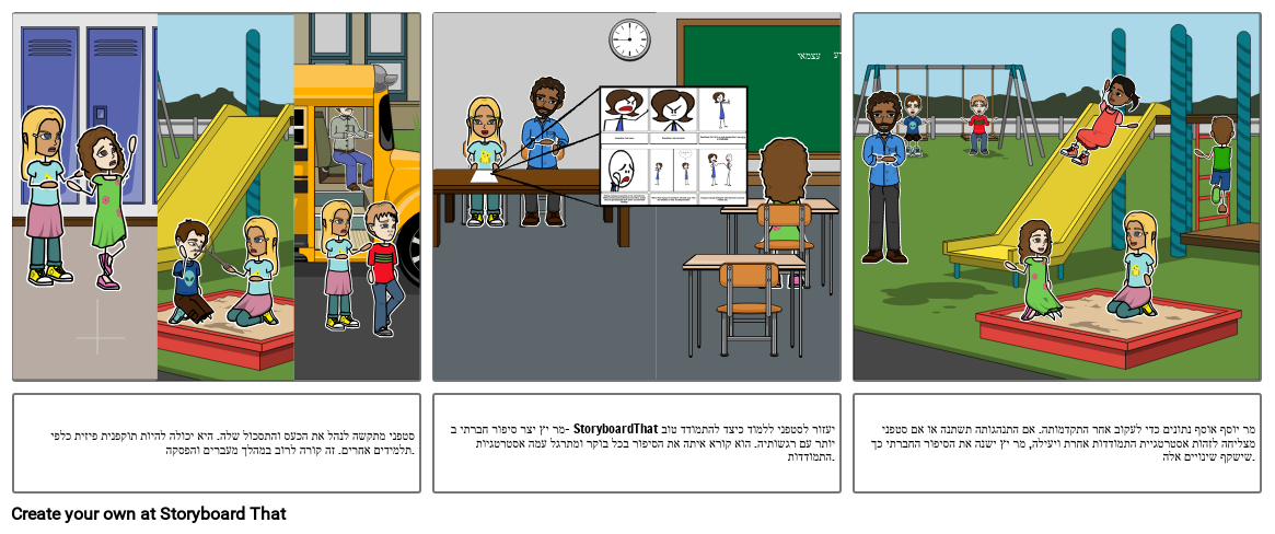מר יץ יצר סיפור חברתי ב- StoryboardThat יעזור לסטפני ללמוד כיצד להתמודד טוב יותר עם רגשותיה. הוא קורא איתה את הסיפור בכל בוקר ומתרגל עמה אסטרטגיות התמודדות.