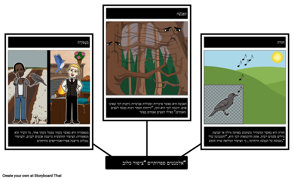 מטאפורה היא כאשר משהו מסמל משהו אחר. כל השיר הוא מטאפורה: הציפור החופשית מייצגת אנשים לבנים, והציפור בכלוב מייצגת אפרו-אמריקאים מודחקים.