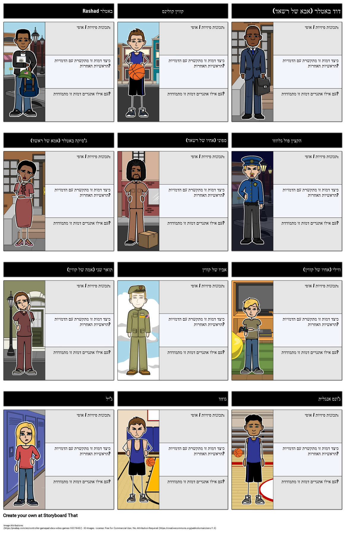 תכונות פיזיות / אופי: כיצד דמות זו מתקשרת עם הדמויות הראשיות האחרות? עם אילו אתגרים דמות זו מתמודדת?