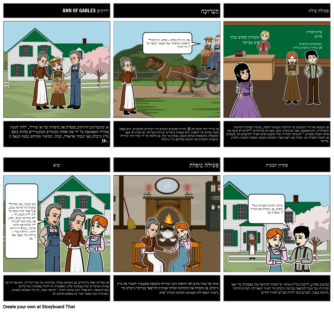 צור דיאגרמת עלילה עבור אן מהגמלונים הירוקים מאת LM Montgomery. כלול את האקספוזיציה, האקשן העולה, השיא, האקשן הנופל וההחלטה. כדי לשנות, התלמידים יכולים ליצור דיאגרמה הכוללת הקדמה, התחלה, אמצע וסוף.