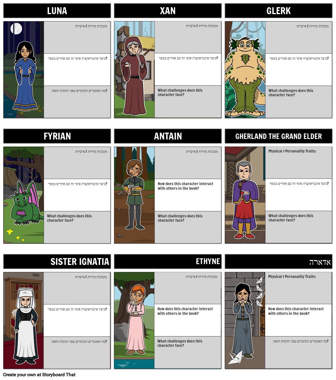 Physical / Personality Traits: כיצד אינטראקציה אופי זה עם אחרים בספר? What challenges does this character face?