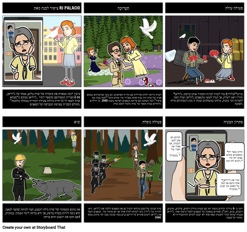 צור תרשים עלילה עבור ציפור לבנה מאת RJ Palacio. כלול את האקספוזיציה, האקשן העולה, השיא, האקשן הנופל וההחלטה. כדי לשנות, התלמידים יכולים ליצור דיאגרמה הכוללת, הקדמה, התחלה, אמצע וסוף.