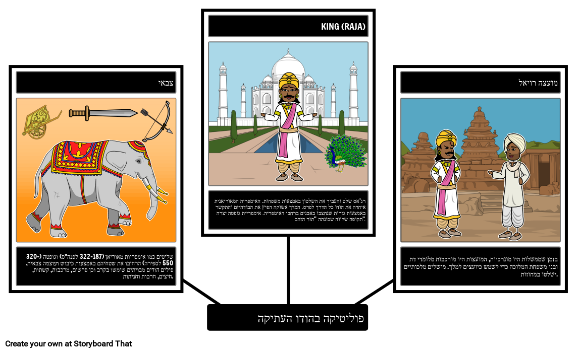 ענבים: גיאוגרפיה, דת, הישגים, פוליטיקה, כלכלה וחיים חברתיים. לוח סיפור זה מסביר את הפוליטיקה והמבנה השלטוני של הודו העתיקה.