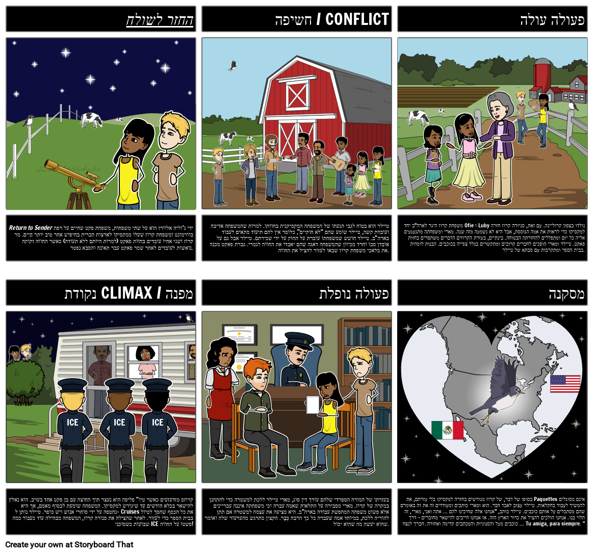 יצירת תרשים עלילה לא רק עוזרת לתלמידים ללמוד את חלקי העלילה, אלא היא מחזקת אירועים מרכזיים ועוזרת לתלמידים לפתח הבנה רבה יותר של מבנים ספרותיים. תלמידים יכולים ליצור לוח סיפור המצלם את קשת הסיפור בעבודה עם לוח סיפור בן שישה תאים המכיל את החלקים העיקריים בתרשים העלילה. בפעילות זו התלמידים ייצרו תרשים עלילתי חזותי של האירועים המרכזיים בסיפור. על התלמידים לזהות נקודות מפנה עיקריות ברומן כמו התערוכה, האקשן העולה, השיא, האקשן הנופל וההחלטה.