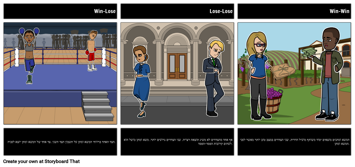 win-win, win-loss, & לאבד להפסיד משא ומתן למשל - תוצאות משא ומתן
