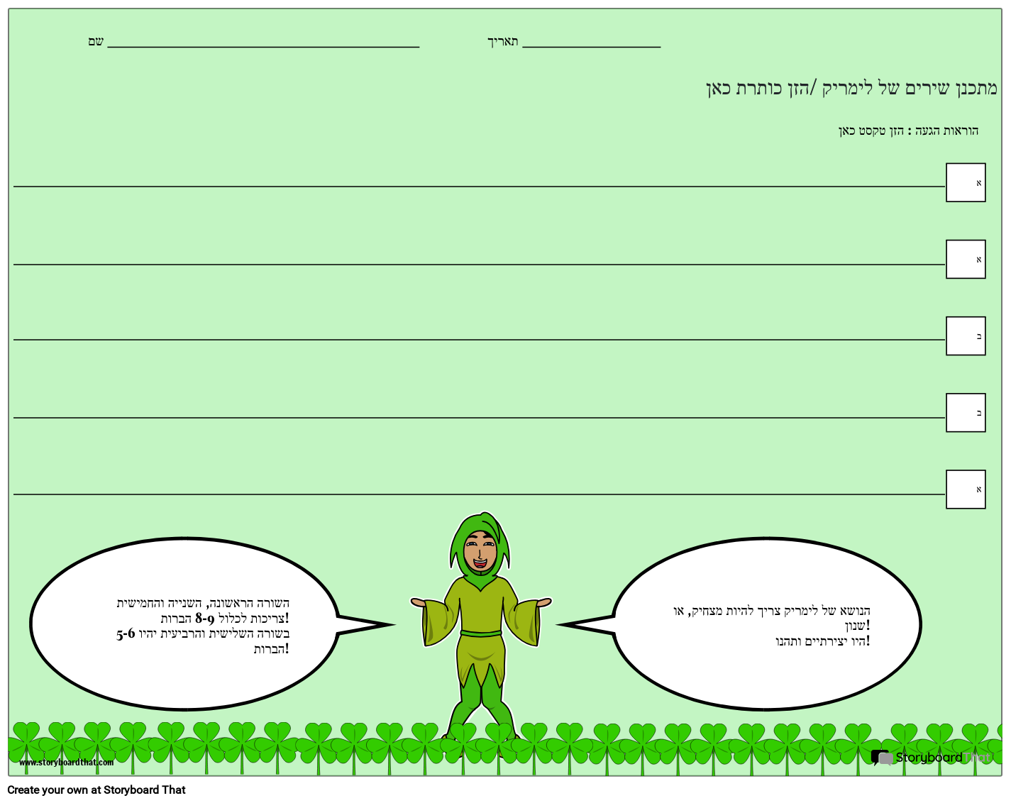 הנושא של לימריק צריך להיות מצחיק, או שנון! היו יצירתיים ותהנו!