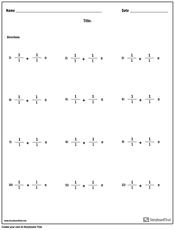 הוספת גליונות עבודה בהתאמה אישית | הפוך גליונות עבודה להוספת שברים בהתאמה אישית עבור התלמידים שלך!