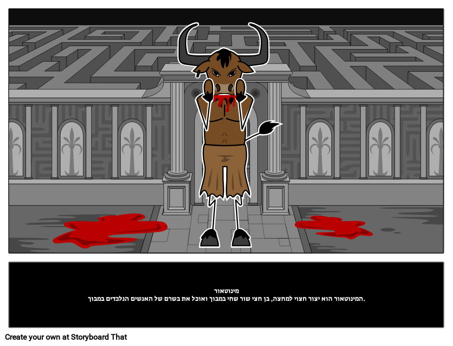 מינוטאורהמינוטאור הוא יצור חצוי למחצה, בן חצי שור שחי במבוך ואוכל את בשרם של האנשים הנלכדים במבוך.