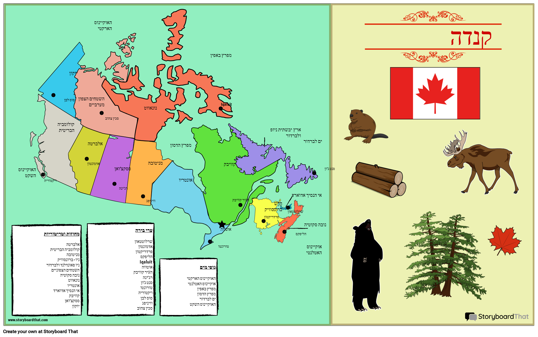 תייג מפה של קנדה! כלול פרובינציות, שטחים, בירות וגופי מים.