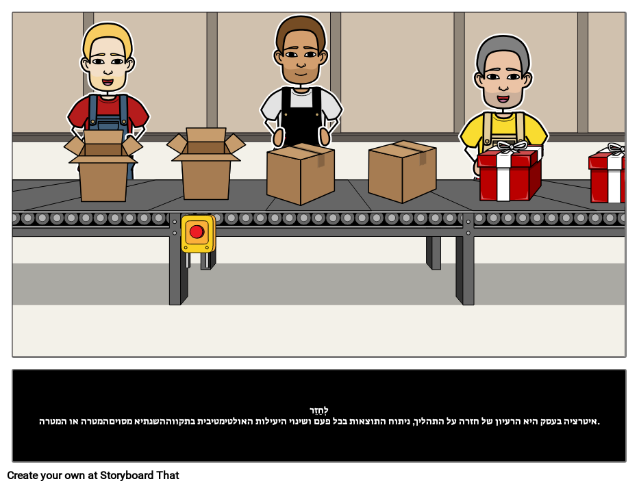 לְחַזֵראיטרציה בעסק היא הרעיון של חזרה על התהליך, ניתוח התוצאות בכל פעם ושינוי היעילות האולטימטיבית בתקווההשגתיא מסויםהמטרה או המטרה.