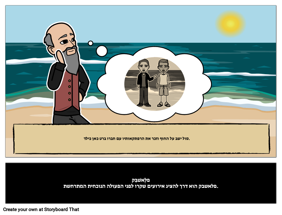 פלֶאשׁבֵּקפלאשבק הוא דרך להציג אירועים שקרו לפני הפעולה הנוכחית המתרחשת.