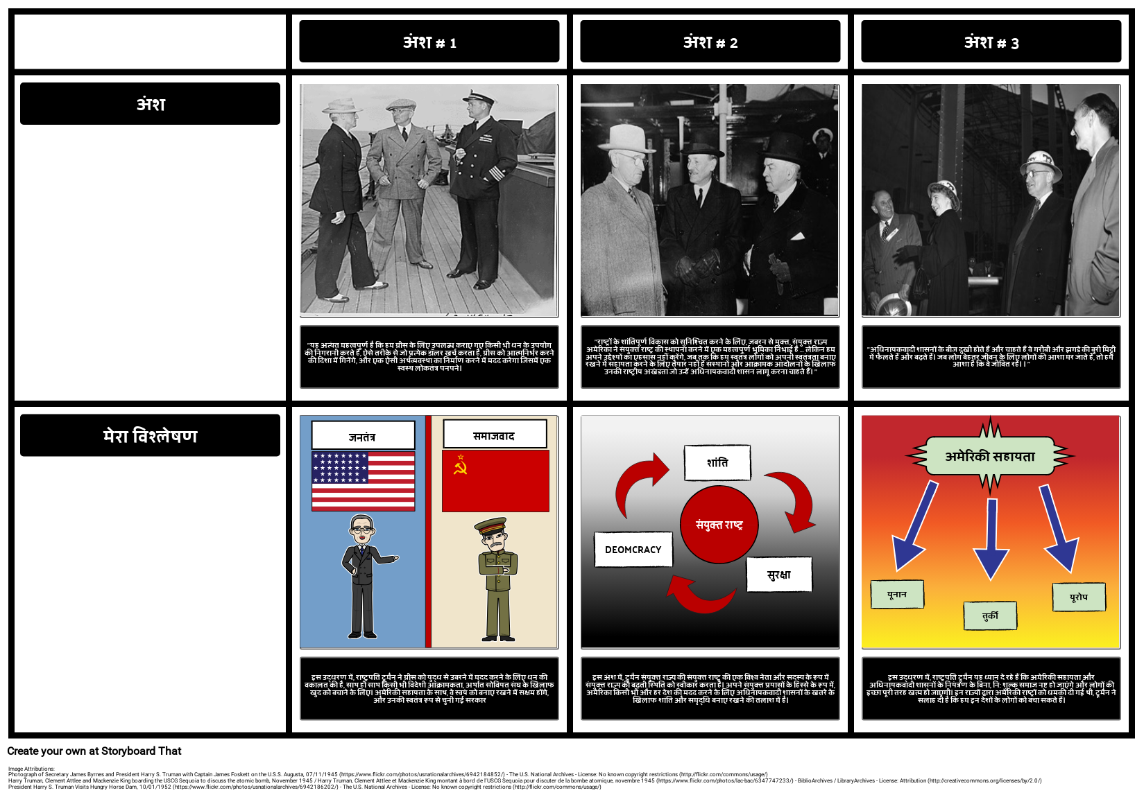 इस उद्धरण में, राष्ट्रपति ट्रूमैन यह ध्यान दे रहे हैं कि अमेरिकी सहायता और अधिनायकवादी शासनों के नियंत्रण के बिना, नि: शुल्क समाज नष्ट हो जाएंगे और लोगों की इच्छा पूरी तरह खत्म हो जाएगी। इन राज्यों द्वारा अमेरिकी राष्ट्रों को धमकी दी गई थी, ट्रूमैन ने सलाह दी है कि हम इन देशों के लोगों को बचा सकते हैं।