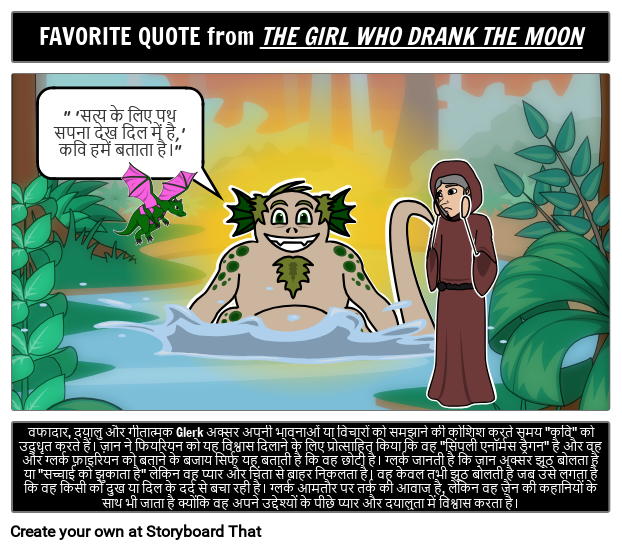 छात्रों के पास किताब से पसंदीदा उद्धरण या दृश्य चुनने से उन्हें व्यक्त करने की अनुमति मिलती है कि कहानी के कौन से हिस्से उनके साथ व्यक्तिगत स्तर पर गूंजते हैं। इस तरह, छात्र एक पाठ-से-आत्म संबंध बना रहे हैं जो पात्रों की समझ और उनके विकास या उपन्यास के विषयों को प्रदर्शित करता है। छात्र अपने स्टोरीबोर्ड को बाद में साझा कर सकते हैं और उनके बारे में संक्षिप्त चर्चा कर सकते हैं कि उनके लिए उद्धरण का क्या अर्थ है।