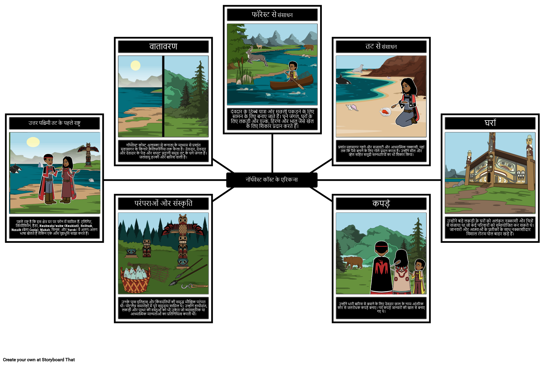 इस गतिविधि में, छात्र एक स्टोरीबोर्ड बनाएंगे जो उत्तर पश्चिमी तट के स्वदेशी लोगों के पर्यावरण और संस्कृति का सारांश देता है।
