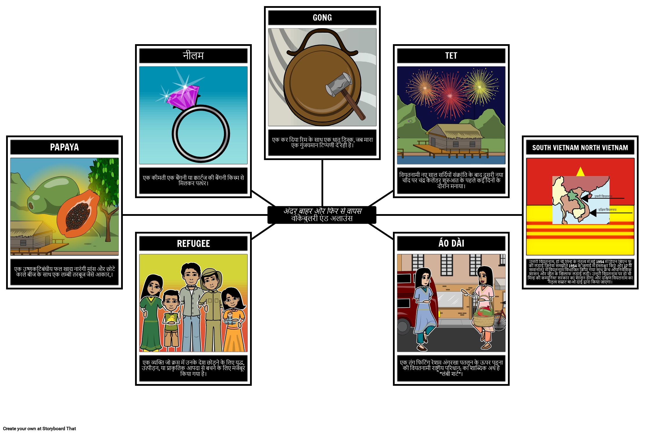 उपन्यास इनसाइड आउट और बैक अगेन में कई शब्दावली शब्द और अनुप्रास मौजूद हैं जो छात्रों के पूर्वावलोकन के लिए सहायक होंगे। ये पुस्तक की समग्र समझ और समय अवधि की समझ में सहायता करेंगे। इस स्टोरीबोर्ड में परिभाषाओं और दृष्टांतों के साथ प्रमुख शब्द हैं।