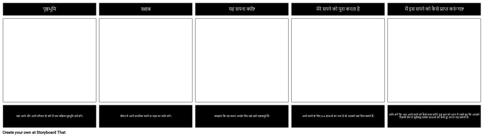 वर्णन करें कि आप अपने सपने को कैसे प्राप्त करेंगे, इस बात को ध्यान में रखते हुए कि आपको पिछली सेल में सूचीबद्ध प्रत्येक बाधाओं को कैसे दूर करना पड़ सकता है।