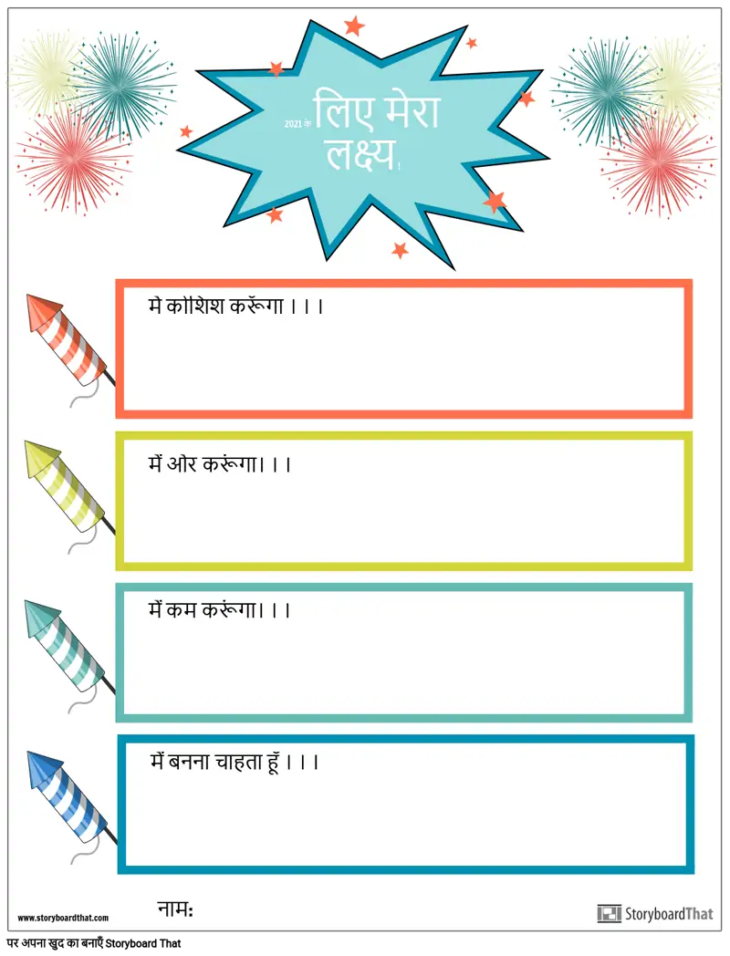 छात्र आगामी वर्ष के लिए अपने लक्ष्यों को प्रतिबिंबित करने के लिए वाक्य शुरुआत को पूरा करेंगे। वे अपने लक्ष्यों को स्पष्ट करने के लिए पात्रों, वस्तुओं या प्रतीकों को जोड़ना चाह सकते हैं।