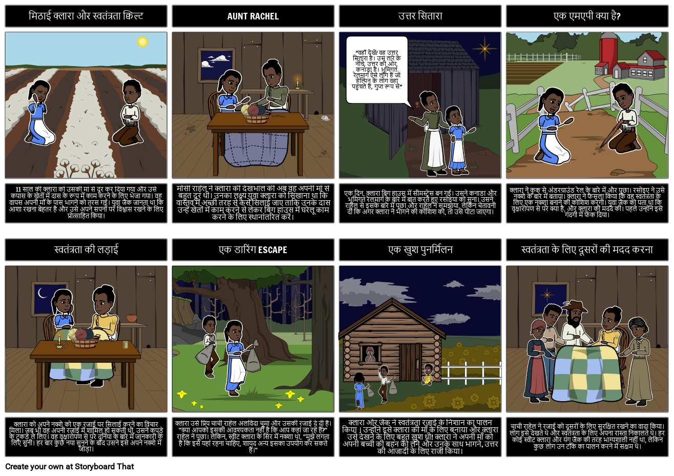 इतिहास को जीवंत करने के लिए साहित्य का उपयोग करें! इस किताब को डेबोर होपकिंसन द्वारा स्वीट क्लारा और फ्रीडम क्विल्ट कहा जाता है और वर्णन करता है कि कैसे एक युवा लड़की को गुलाम बनाया जाता है जो चुपके से स्वतंत्रता के लिए एक नक्शे को सिलाई करती है।