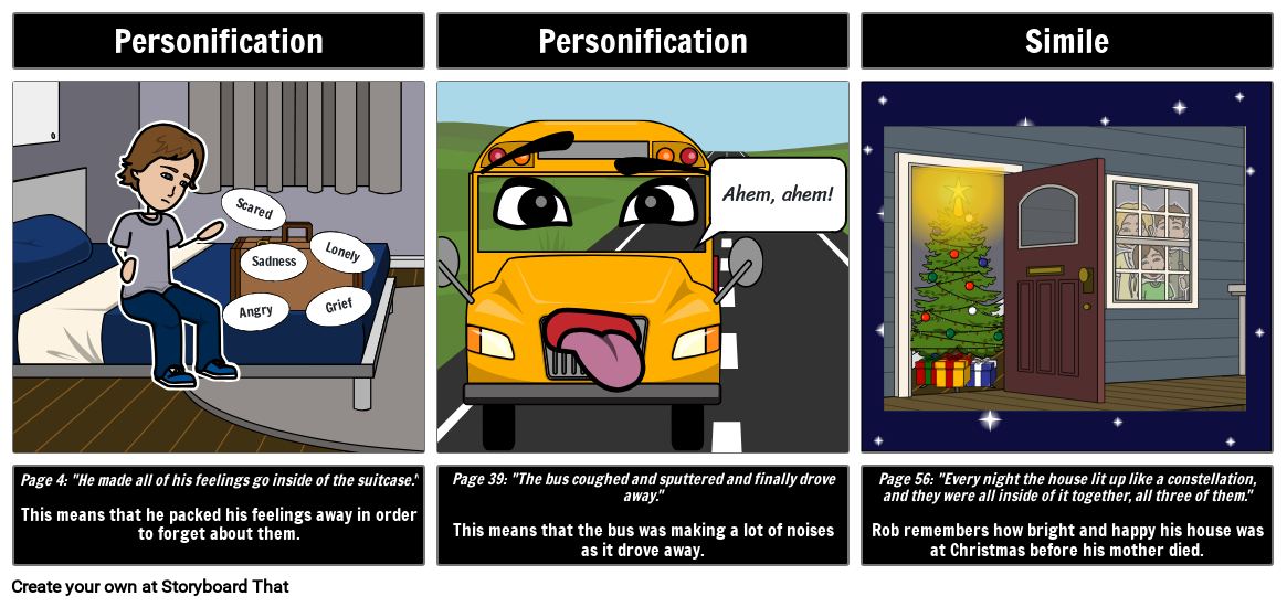 Page 4: "He made all of his feelings go inside of the suitcase."This means that he packed his feelings away in order to forget about them.