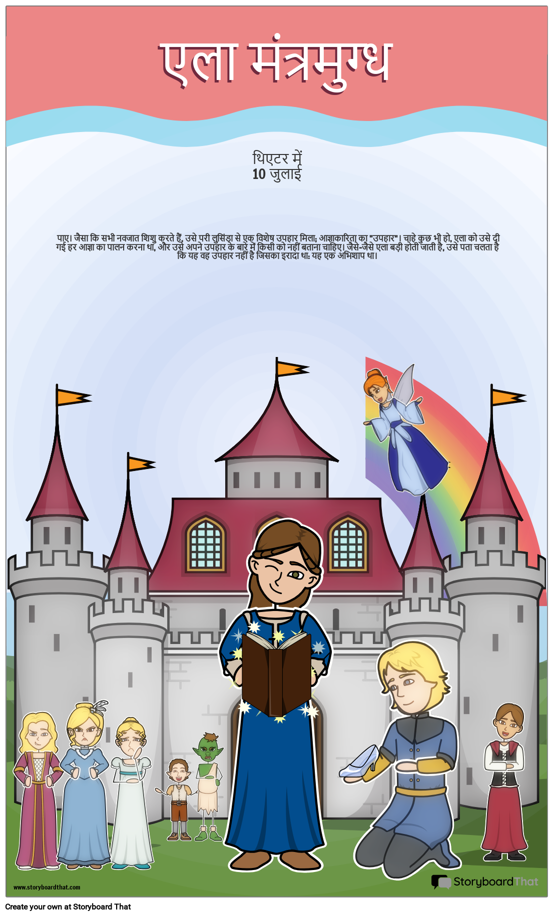 छात्र गेल कार्सन लेविन द्वारा एला एनचांटेड पुस्तक के लिए एक मूवी पोस्टर बना सकते हैं, जिसमें मुख्य पात्रों, सेटिंग्स और बहुत कुछ पर प्रकाश डाला गया है!
