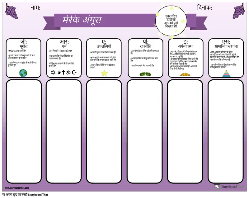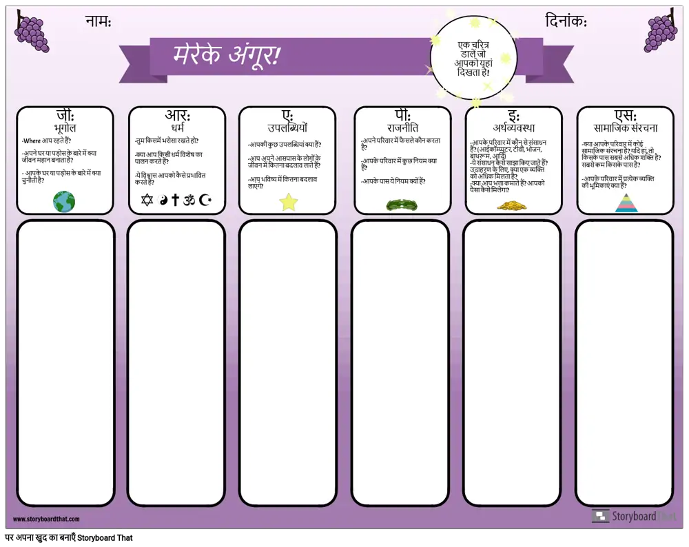 इस ग्राफिक आयोजक का उपयोग अपने छात्रों को संक्षिप्त परिचय देने के लिए करें। छात्र प्रत्येक श्रेणी के लिए प्रश्नों का उत्तर देते हैं: भूगोल, धर्म, उपलब्धियां, राजनीति, अर्थव्यवस्था और सामाजिक संरचना, अपने स्वयं के जीवन और अनुभवों को दर्शाकर। उन्हें प्रतिबिंबित करने और लिखने का मौका मिलने के बाद, शिक्षक प्रत्येक श्रेणी के बारे में कक्षा चर्चा का नेतृत्व कर सकते हैं। यह एक उपयोगी सामुदायिक भवन गतिविधि है और साथ ही इस सरल ग्राफिक आयोजक को पेश करने का एक तरीका है जिसका उपयोग प्रत्येक प्राचीन सभ्यता के अध्ययन के लिए किया जा सकता है।
